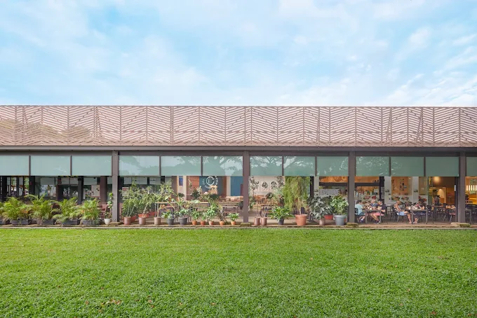 The cafe’s aesthetic is filled with lush greenery and warm wooden tones that perfectly mirrors the relaxing shoreline just steps away, making it the ultimate destination for a post-walk brunch that feels both stylish and stress-free.