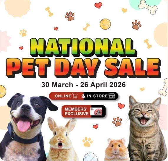 Members’ Exclusive National Pet Day Sale is here from 30 Mar – 26 Apr 2026 with special prices on your pet’s favourite products. More savings, more reasons to spoil them 💛