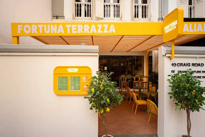 Pet-friendly Cafe-Outdoor Seating — Transport yourself to the sunny shores of the Amalfi Coast without leaving Tanjong Pagar at Fortuna Terrazza Cafe. This vibrant, lemon-yellow Italian brunch spot welcomes you